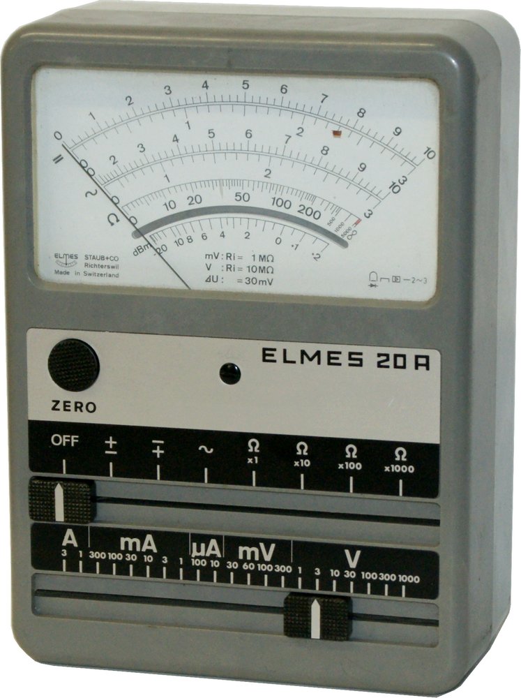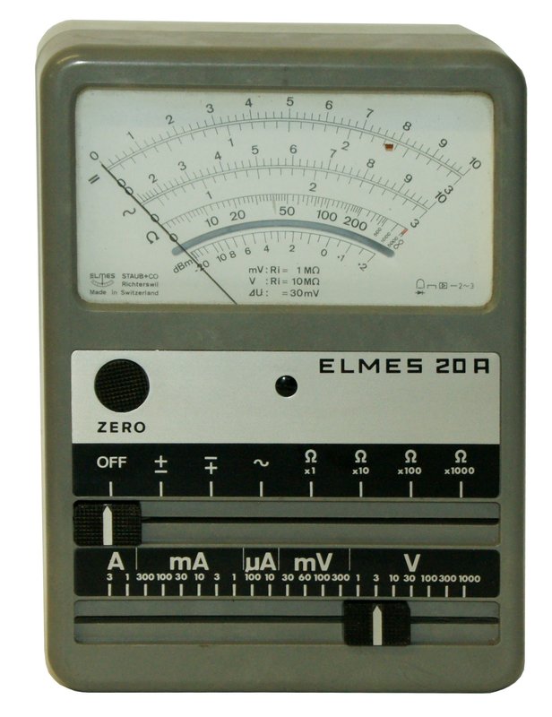 Vielfachmessinstrument Elmes 20A; hergestellt von Staub AG, Richterswil.