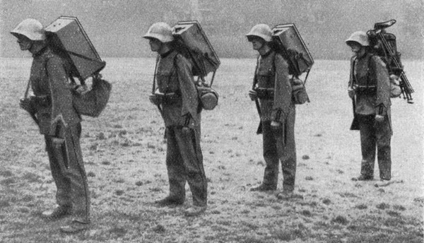 In 1931, Telefunken did develop a portable wireless set with 5 Watts output power, consisting of the 5W-transmitter Spez 469 Bs and the receiver Spez 445 Bs, both portable „backpack“ sets, the whole station was known as Kleinfunkgeraet a or Fu 9 . The German engineers preferred separate receivers and transmitters in these years.