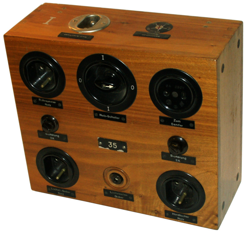 Am senderseitigen Netzanschlusskästchen werden die verschiedenen Geräte eingesteckt, sie können von einem zentralen Netzschalter aus eingeschaltet werden.