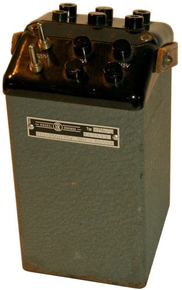 Zum Betrieb von Geräten mit 110 V, der typischen Betriebsspannung amerikanischen Equipments, wurde von der Firma Knobel, Ennenda ein 220 / 110 V Transformator gefertigt.