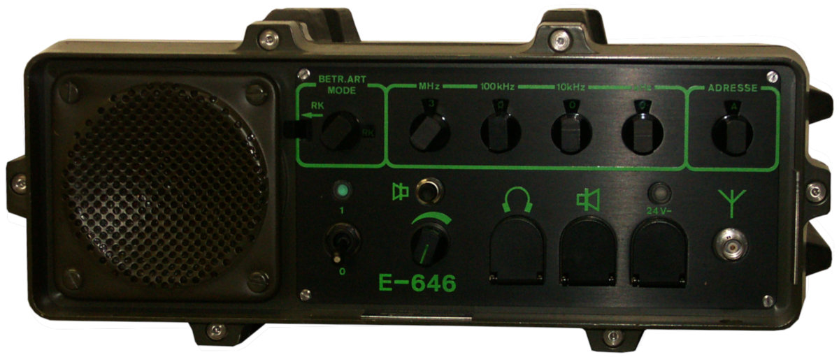 Twenty-three S-510 transmitters and a total of 420 E-646 receivers were acquired in 1981/83; 397 of the receivers were of the normal version and 23 of the K version, the catalogue price was 15086.- Fr. (including antenna material).