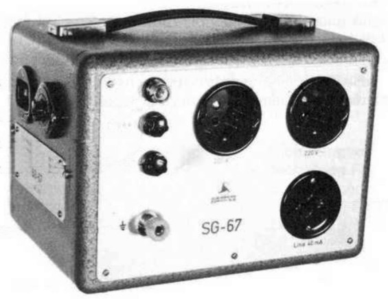 - Mains power supply SG 67: for power supply from the mains, isolating transformer, input voltage switchable from 110 - 250 V, the pointer of the measuring instrument must be at the green mark for 220 V.