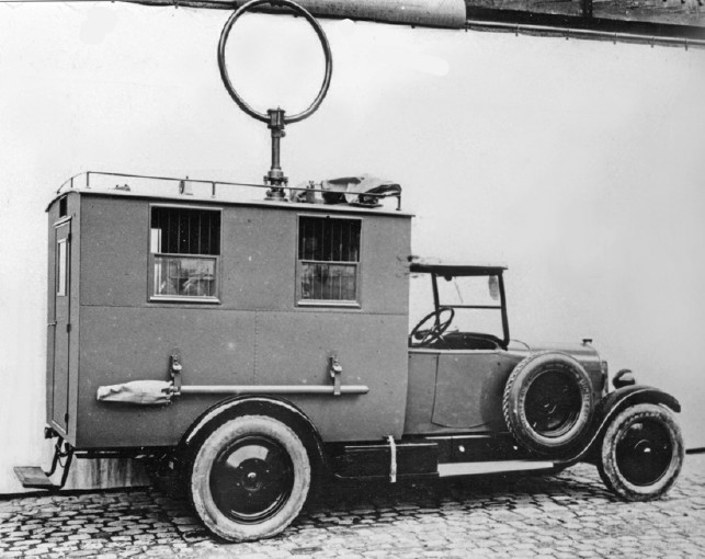 | Mobile DF 29 Long wave | Three light trucks Berna were equipped in 1929 with a Telefunken direction finding system based on the E358N DF receiver and a round frame antenna on the roof with manual drive; a AR245 transmitter was installed for direction finding commands & result transmissions. | Receiver: E358N; Transmitter ARS245 | 1929 | ![]() |