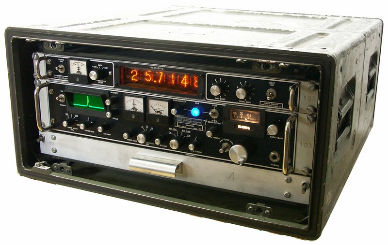 The VHF surveillance receiver Watkins Johnson WJ-521A-3 has been presented to the public in 1967 and it saw use at the military radio traffic surveillance („Air police“) under the designation E-649.