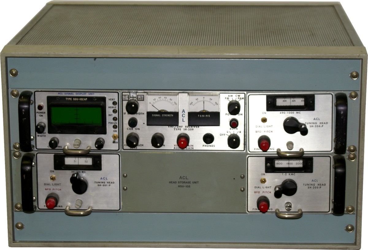 The modular SR-209 receiver manufactured by the US company Astro Communications Laboratory Inc., Gaithersburg, was acquired as VHF monitoring receiver in the 1960s, the Swiss Army designation was E-648.