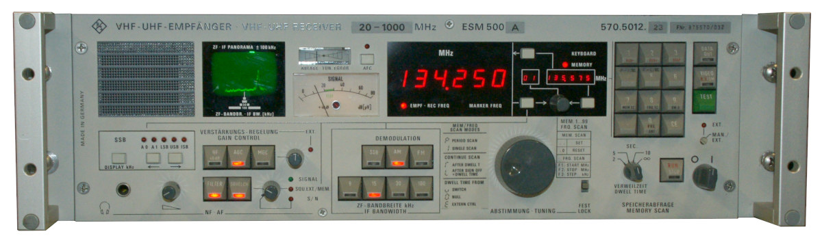 The VHF / UHF receiver ESM 500A from Rohde & Schwarz was used as standalone monitoring receiver with army designation E-664 and also as receiver of the P-736 VHF direction finding system.