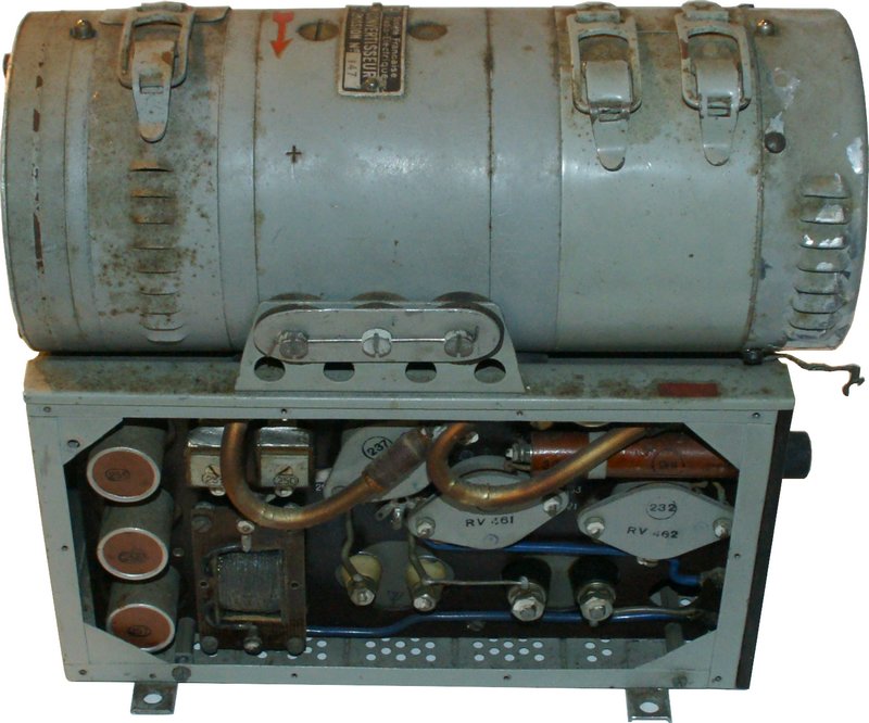 Umformer der Flugfunkstation FG IX; hergestellt von Elektromotorenbau Weber, Pieterlen in Lizenz der Société Française Radio-Electrique.