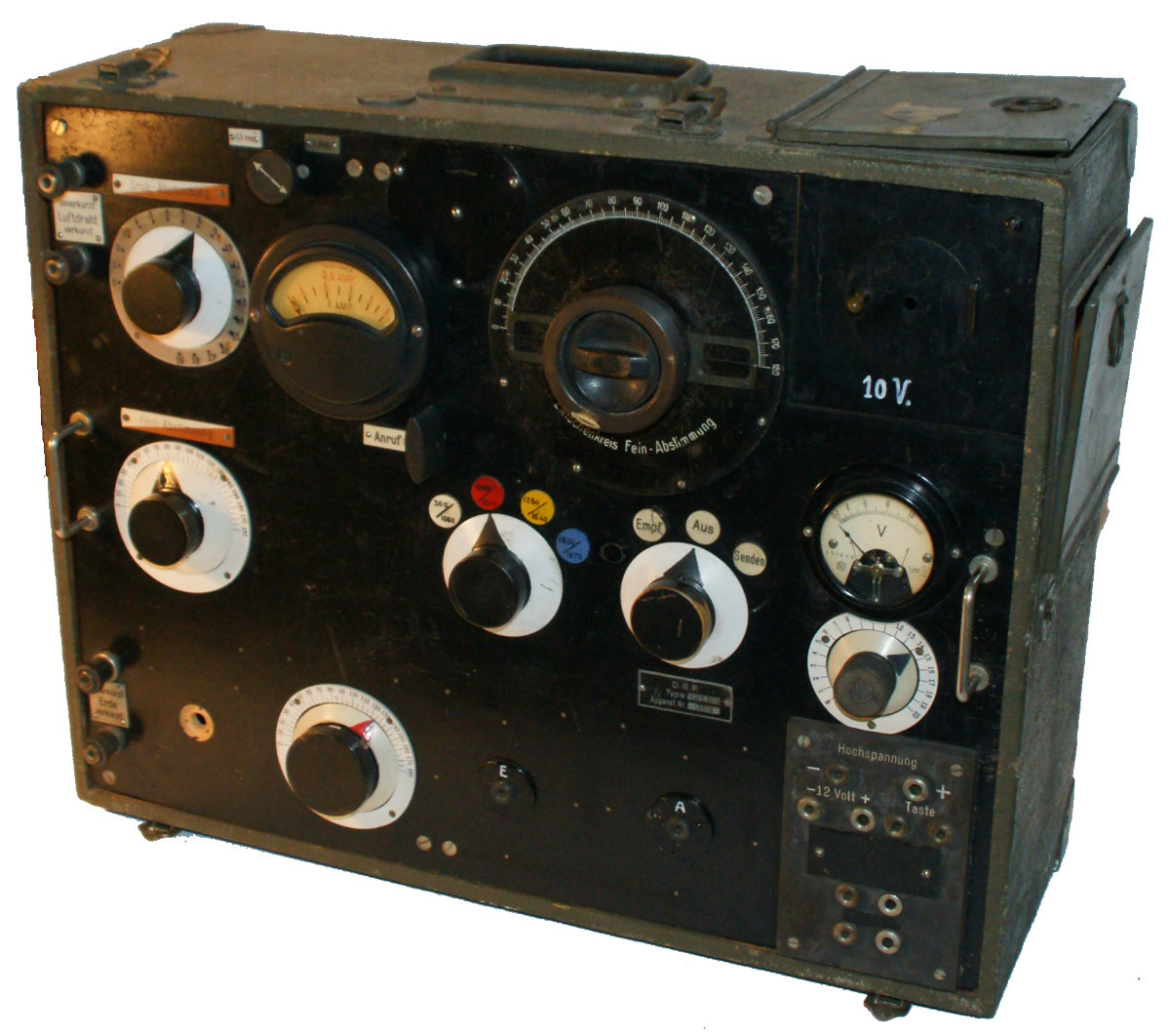 - Handgenerator: zur Erzeugung der Anodenspannung von 500 Volt musste der Handgenerator Telefunken „Handdrehmaschine“ SE 3,5 betätigt werden