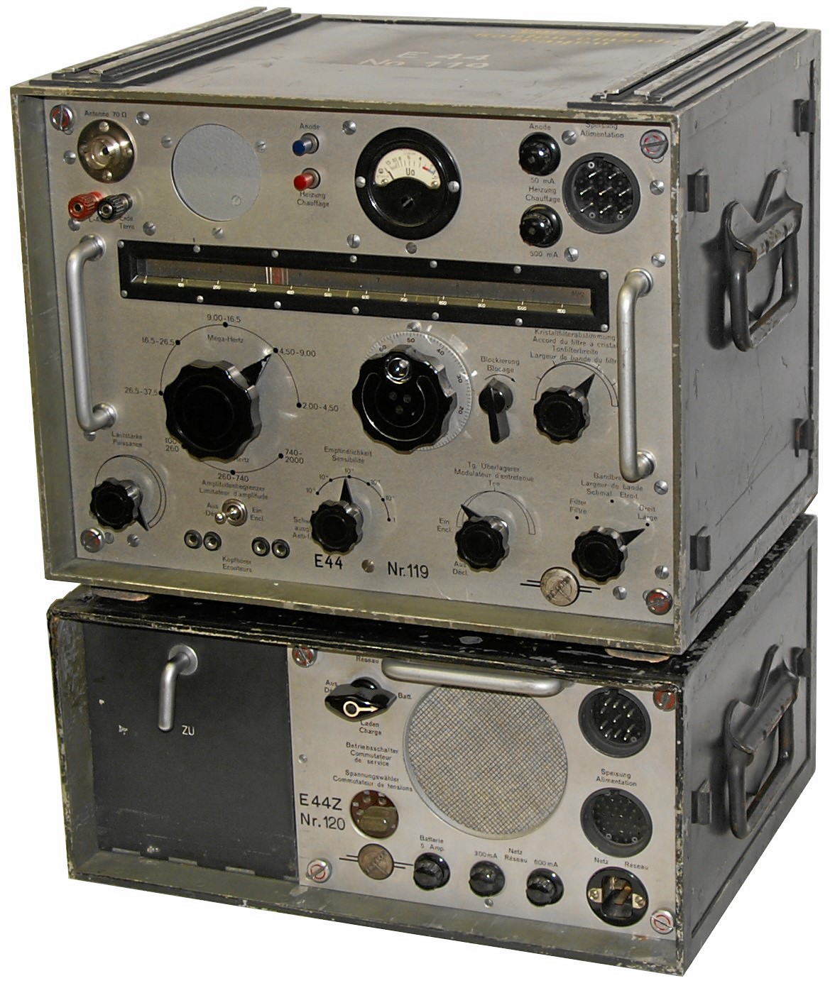 Die Empfangsanlage E44 besteht aus der Empfängerkiste und dem Zusatzkasten E44Z, in diesen ist neben Netzteil und Umformer für Akku-Betrieb auch die Endstufe und ein Gerätelautsprecher integriert. Als Antenne ist eine Langdrahtantenne vorgesehen.