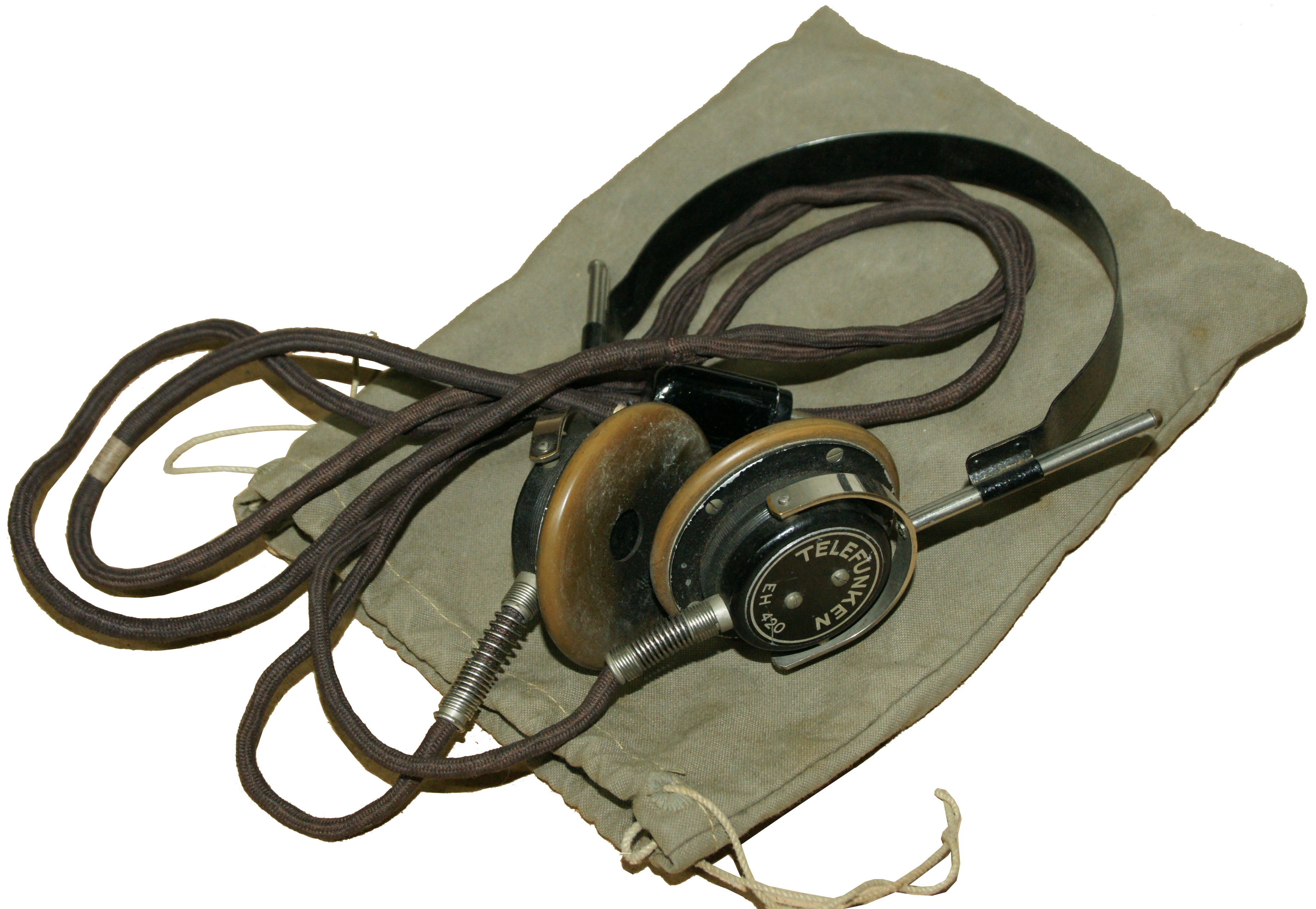 Üblicherweise lagen jeder TL-Station in einem Stoffbeutel im Batteriekasten zwei Kopfhörer EH420 bei, zusammen mit der Sprechtaste, dem Kohlkopfmikrophon und der TL-Taste.