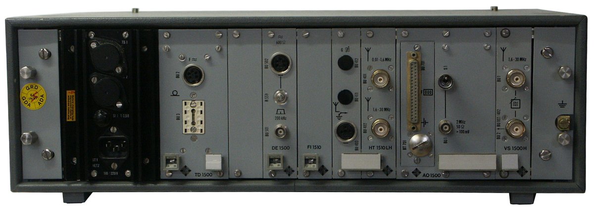 The complete receiver has a modular construction behind the front panel. The receiver E 1500 is the main component, optional components are the DE 1500 (this second demodulator is used for independant side band / ISB reception modes A3B/A7B), the radio teletype decoder TD 1500 (F1/F4/F6A) and the AD 1500 dual antenny diversity option, which make a complete E1501.