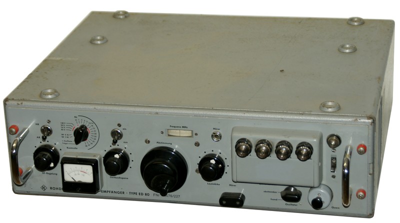 The UHF aeronautical radio receiver ED80 covers the military UHF aeronautical radio range with 225 - 400 MHz, it has a fixed frequency by means of a quartz oscillator and can alternatively be tuned by means of a VFO; it also has an analogue dial with a conventional tuning knob.